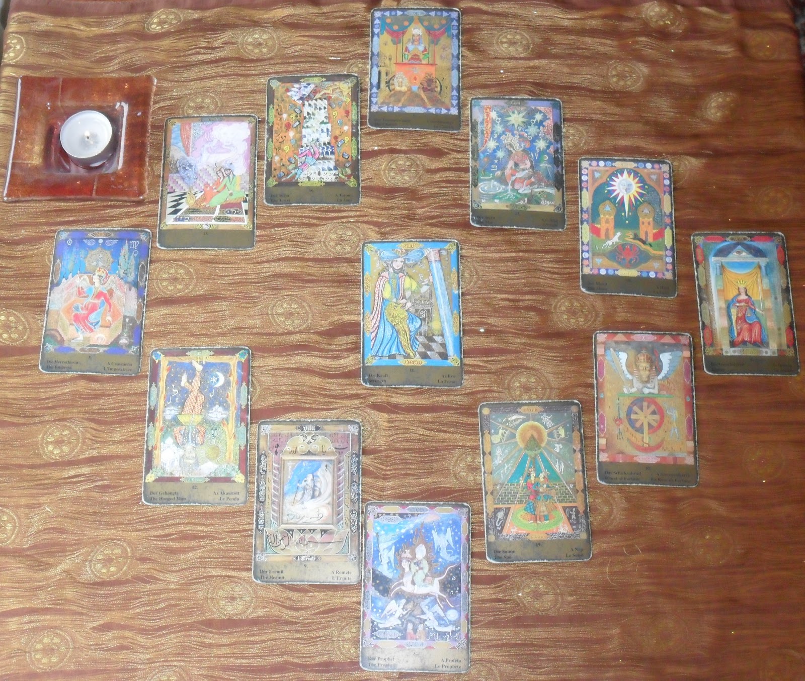Készüljünk fel a kártyavetésre, csendesítsük el gondolatainkat, gyújtsunk mécsest vagy gyertyát, keverjük meg a nagy Arkánum lapjait, és közben gondoljunk a kérdésre pl.: mire számíthatok az előttem álló évben? Majd húzzunk ki 12 kártyát, (minden hónapnak egy-egy lapot) figyelve a sorrendre. Tegyük le egymás mellé vagy kör alakban a lapokat, és értelmezzük őket. Ha ez megvan, húzhatunk egy 13. kártyát is, ami az évet általánosságban jellemzi.